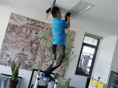 在晴天送風(fēng)狀態(tài)下,開(kāi)機(jī)運(yùn)轉(zhuǎn)半天左右,使空調(diào)