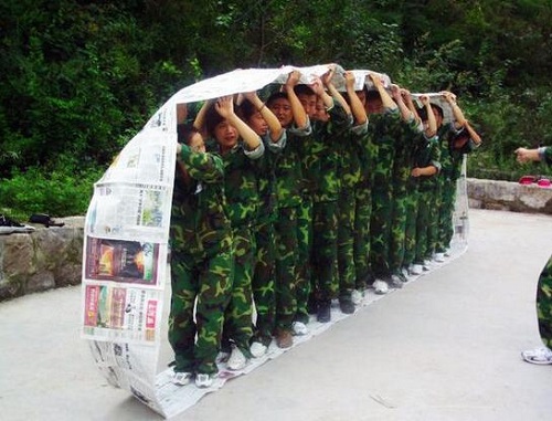 鐵甲戰(zhàn)車項目簡介:團隊所有成員利用指定道具制作一條可以容納所有隊員的大型履帶,然后全體隊員同時站在履帶內部統(tǒng)一行進,在履帶不能斷裂的情況下通過指定距離。只有報紙、小剪刀和膠布,在規(guī)定的時間內完成運載履帶的制作,并把所有人員通過履帶轉移的安全地帶。時間緊迫,人員的分工、協(xié)作,資源整合、監(jiān)督、激勵機制等對完成任務是必不可少的。通過一起參與,共同配合、親手制作履帶,體驗成功的喜悅!