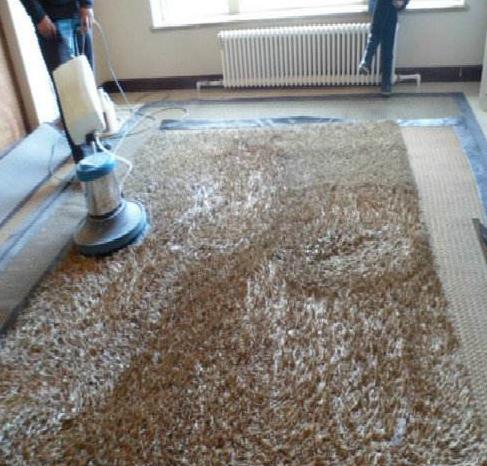4.一邊清洗一邊,大齒梳子梳洗地毯。