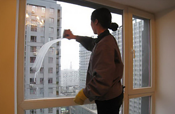 第四步:對玻璃進(jìn)行清潔工作。此過程具體的清潔流程可以根據(jù)玻璃的潔凈程度來進(jìn)行。大體工作就是,先用清潔球或者鏟刀等工具,將玻璃上與窗框上的污垢進(jìn)行清除,然后用干凈的清潔布擦拭比例并在擦拭玻璃的過程中適當(dāng)?shù)膶ΣAЬ植窟M(jìn)行噴水或者噴洗潔精溶液,以保證能夠?qū)⒉Ac窗框上的污垢清理干凈。最后再用干燥干凈的清潔布對玻璃與窗框進(jìn)行一個整體的清潔處理。