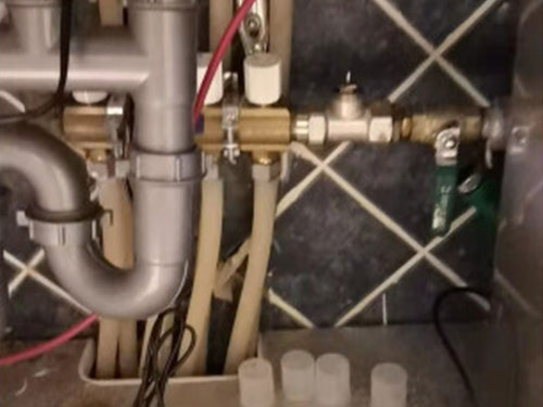 4、當(dāng)我們將分水閥都一次關(guān)閉之后,只留下一個處于開啟狀態(tài),并且在后面安裝水龍頭接一段軟管通到自家下水道。