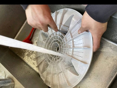 1.將線屑過(guò)濾器和投放盒(部分機(jī)型沒有)取出清洗干凈,并且放回原位。
