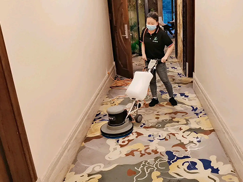 3、對污漬進行打磨去漬。要根據(jù)地毯材質(zhì)選擇對應的刷盤