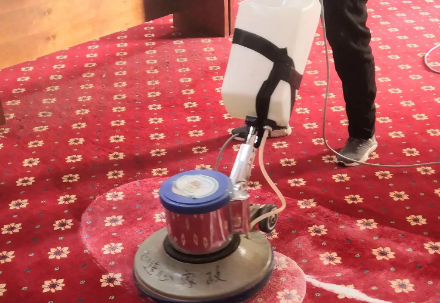 然后,干泡刷洗:用裝有打泡器、地毯刷的單盤掃地機(jī),以干泡刷洗地毯。