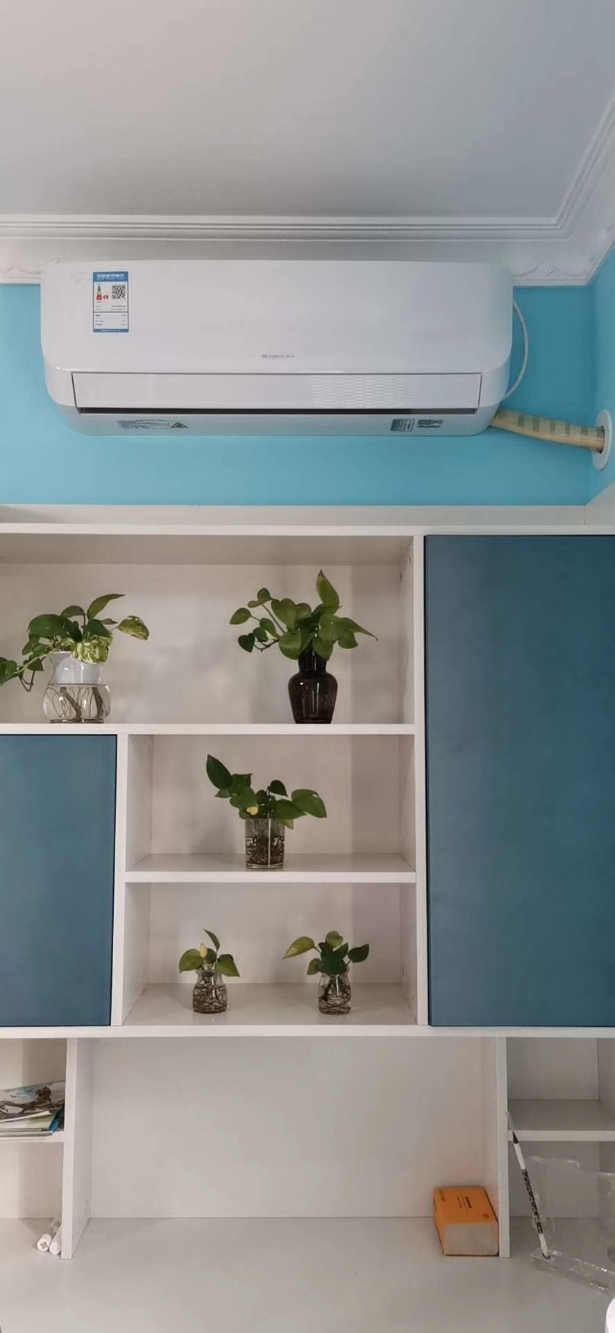 (1)根據(jù)室內(nèi)機(jī)的位置打出管的過墻眼兒,在預(yù)計(jì)位置釘好室內(nèi)機(jī)的掛盤(必需確保水平,用水平儀校正),將管穿出后掛好室內(nèi)機(jī)。
